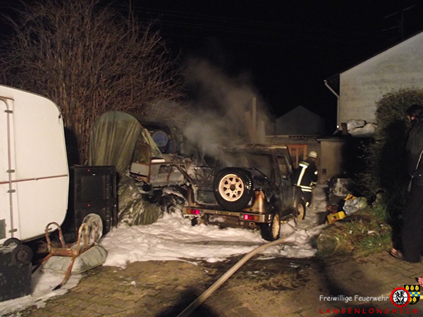 Brand eines Holzstapels und PKW-Brand, Dorsheim