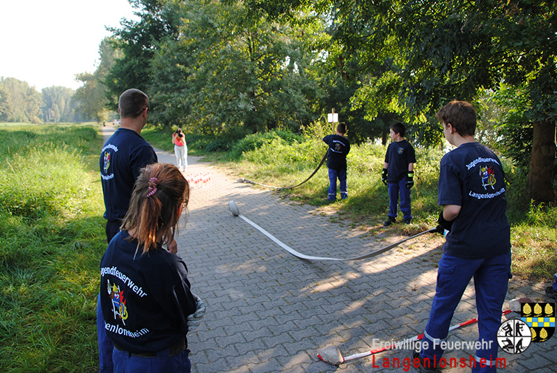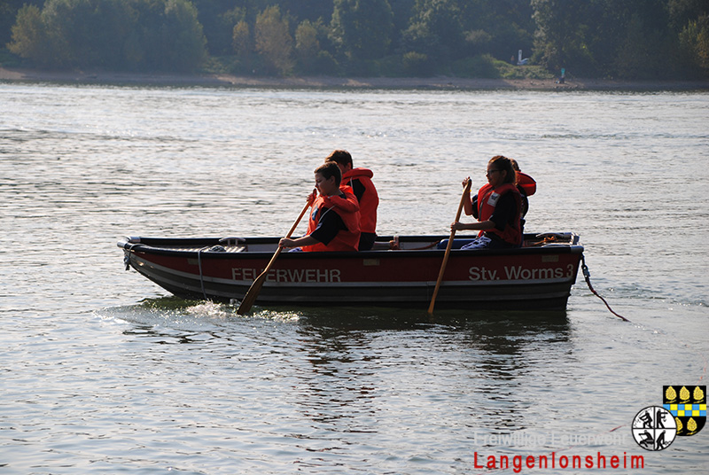 Unter anderem mussten sie mit dem Boot auf dem Rhein einen Parcours absolvieren, diverse Spiele rund ums Wasser bewältigen und ihr Feuerwehrwissen in einem Quiz beweisen.